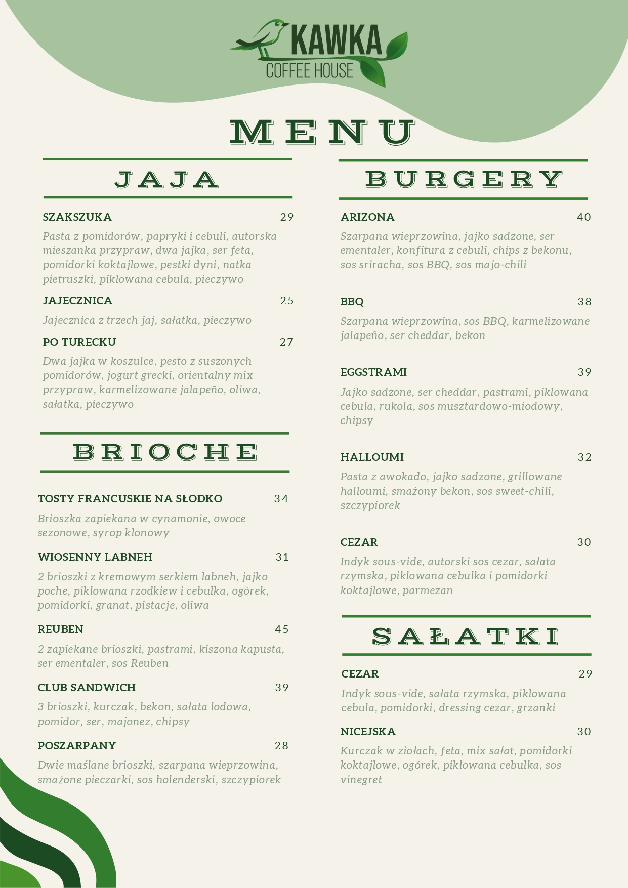 W kawiarni dostępne są śniadania i lunche. Nasza kuchnia jest czynna codziennie od 9:00 do 15:00