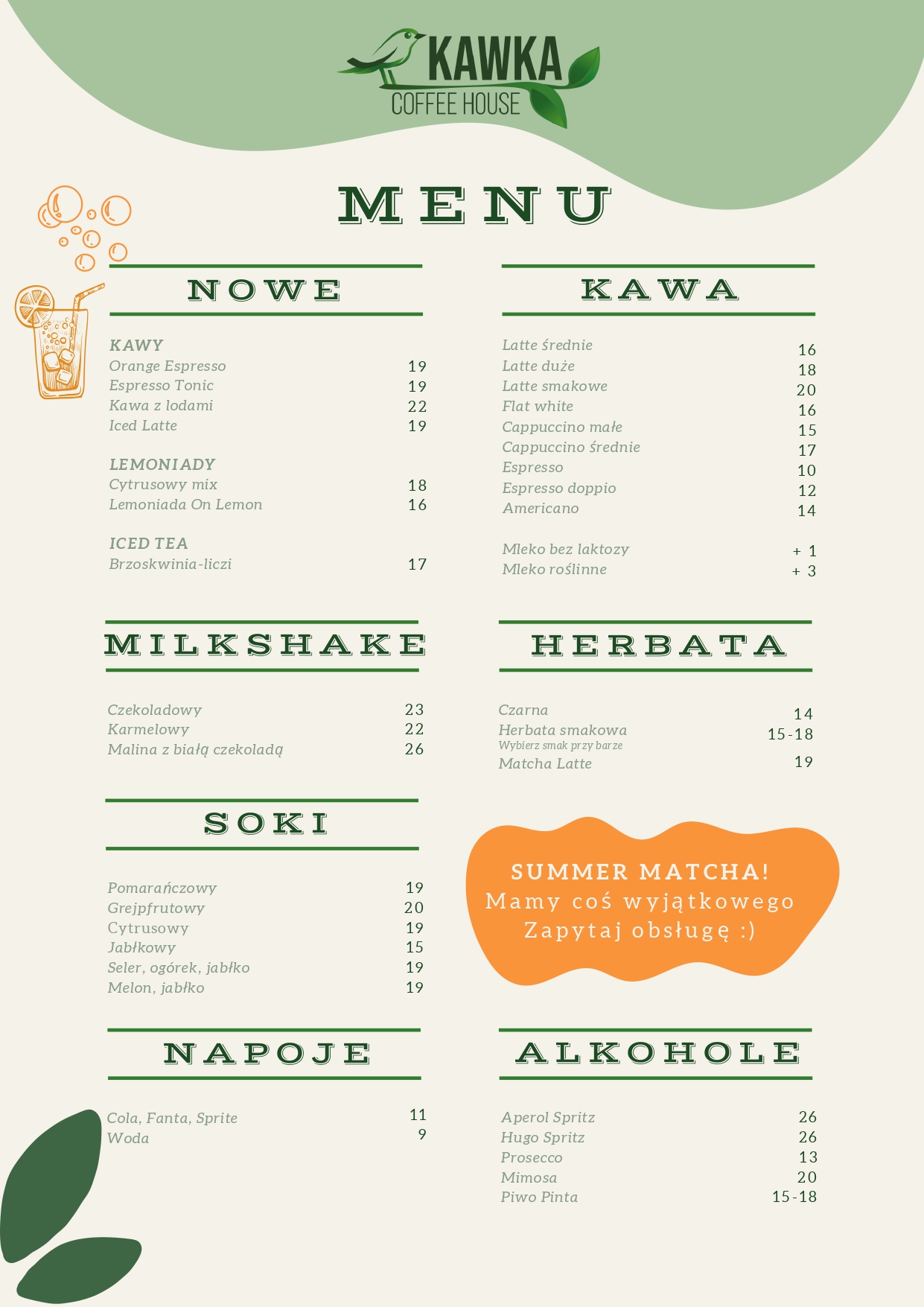 Oferta kaw, ciast i śniadań jest bardzo różnorodna, z pewnością każdy znajdzie coś dla siebie. Każdą kawę i ciasto możesz wziąć na wynos.