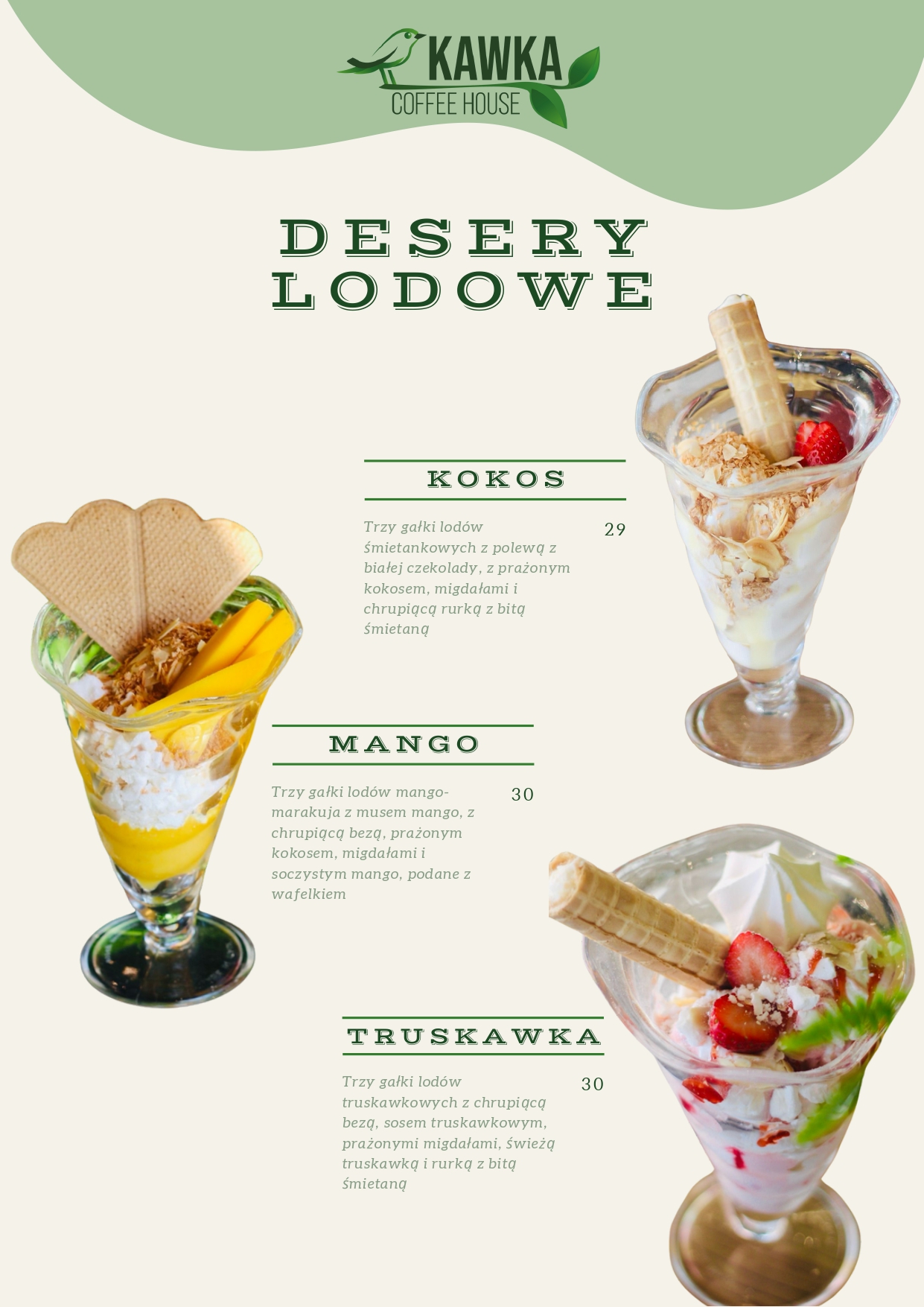 - świeże wypieki i desery z naszej pracowni cukierniczej,
